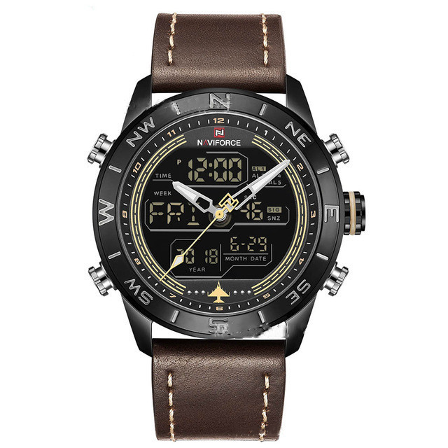 NAVIFORCE 9144 Fashion Gold Men Sport Watches Mens LED Analog Digital Watch Army Military Leather Quartz Watch Relogio Masculino